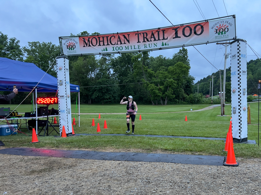 I needed a Western States qualifying race and a hilly summer race in preparation for my upcoming 200. The Mohican 100 met those, and it’s one of the oldest 100 milers, so off to Ohio. We stayed at a local motel less than 5 minutes from the start/finish at Mohican stare park which was really convenient, especially with a 5 am start. The weather was cooler waiting to take off, but I knew it wouldn’t last once the sun came up. The race is composed of a large loop (27 miles) which is completed twice and then that same loop with a short cut making it 23 miles, also repeated twice. The majority of the course is single track mountain trails with short sections of double track and gravel. Since there were nearly 200 runners toeing the line, I wanted to get a good position on the single track in the conga line. I knew I could move at a good pace but still be conservative the first few miles and not go out too fast, so I positioned myself towards the back of the front pack. I found myself getting frustrated each time I ran the initial 4 miles of the loop because of the short hills and switch backs mixed in. It was difficult to get a good rhythm going. After about 4 miles though, it was smoother and I could pick up the pace to the first aid station, Gorge. From there, it’s nice, runnable single track to Fire Tower aid station where I saw my husband (and only crew). The music from this aid station carries through the woods, so I could it hear from quite a distance. Fortunately, I had read about this in race reports, so I knew to be patient and just because I could hear it, it did not mean I was as close as I thought. That can really screw with you mentally late in a race.